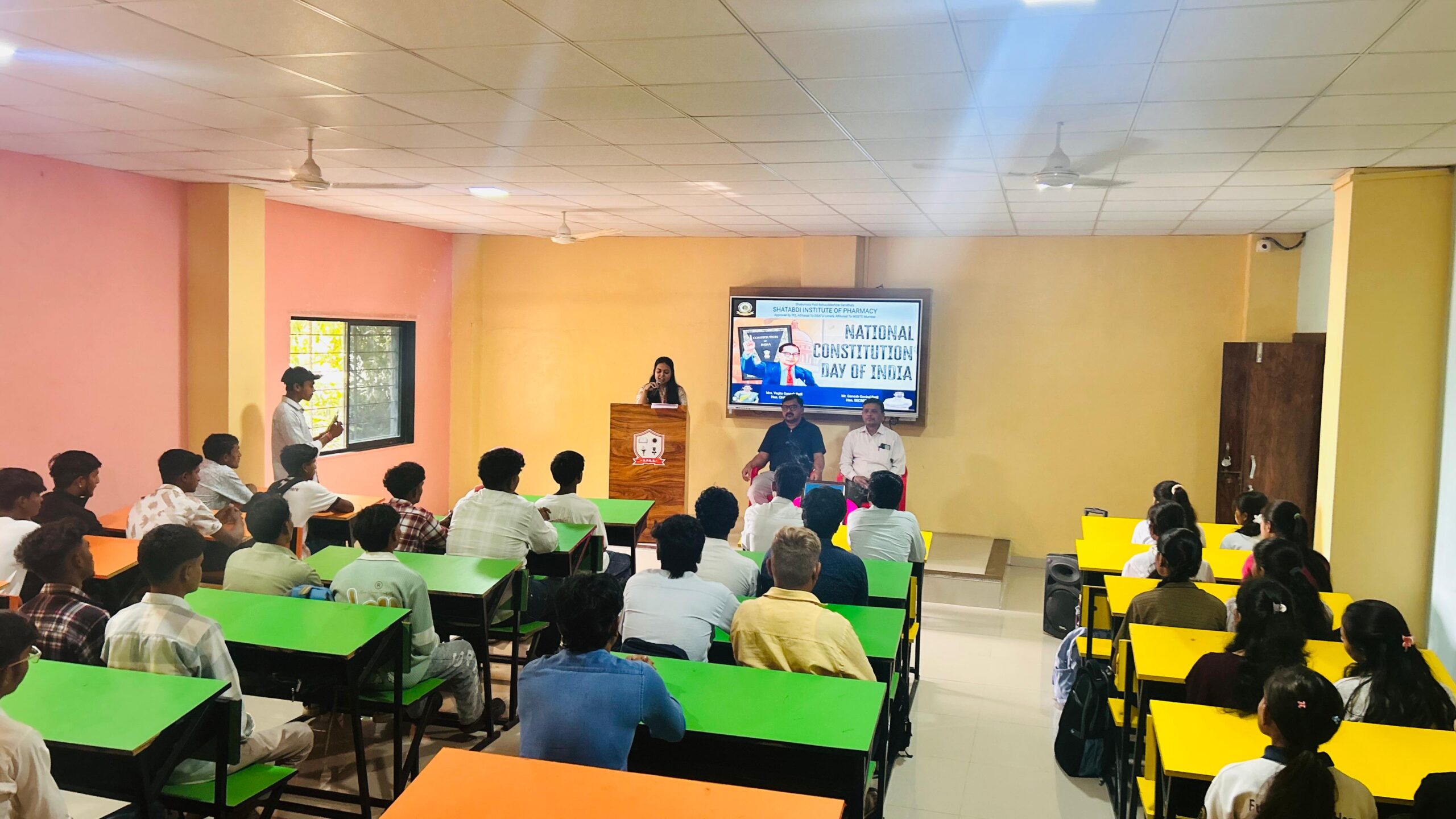 नंदुरबार (प्रतिनिधी) शताब्दी इन्स्टिट्यूट ऑफ फार्मसीमध्ये राष्ट्रीय संविधान दिन मोठ्या उत्साहात, अनुशासनबद्ध वातावरणात आणि देशभक्तीच्या भावनेने साजरा करण्यात आला. कार्यक्रमाची सुरुवात भारतरत्न डॉ. बाबासाहेब आंबेडकर यांच्या प्रतिमेला पुष्पहार अर्पण करून करण्यात आली. संविधान दिनाचे औचित्य साधत उपस्थितांनी प्रास्ताविक वाचनातून संविधानाबद्दल आदर व्यक्त केला.